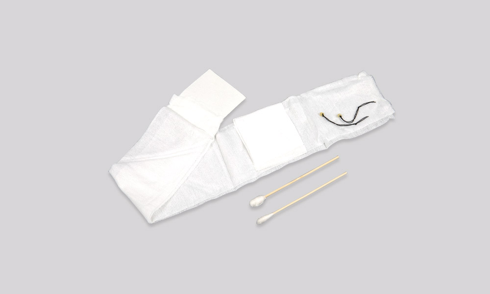 [結(jié)構(gòu)及組成] 產(chǎn)品由紗布?jí)K、裹帶、粘合塊、棉簽、氣門芯或臍帶夾、開(kāi)口紗布、棉紗線組成。